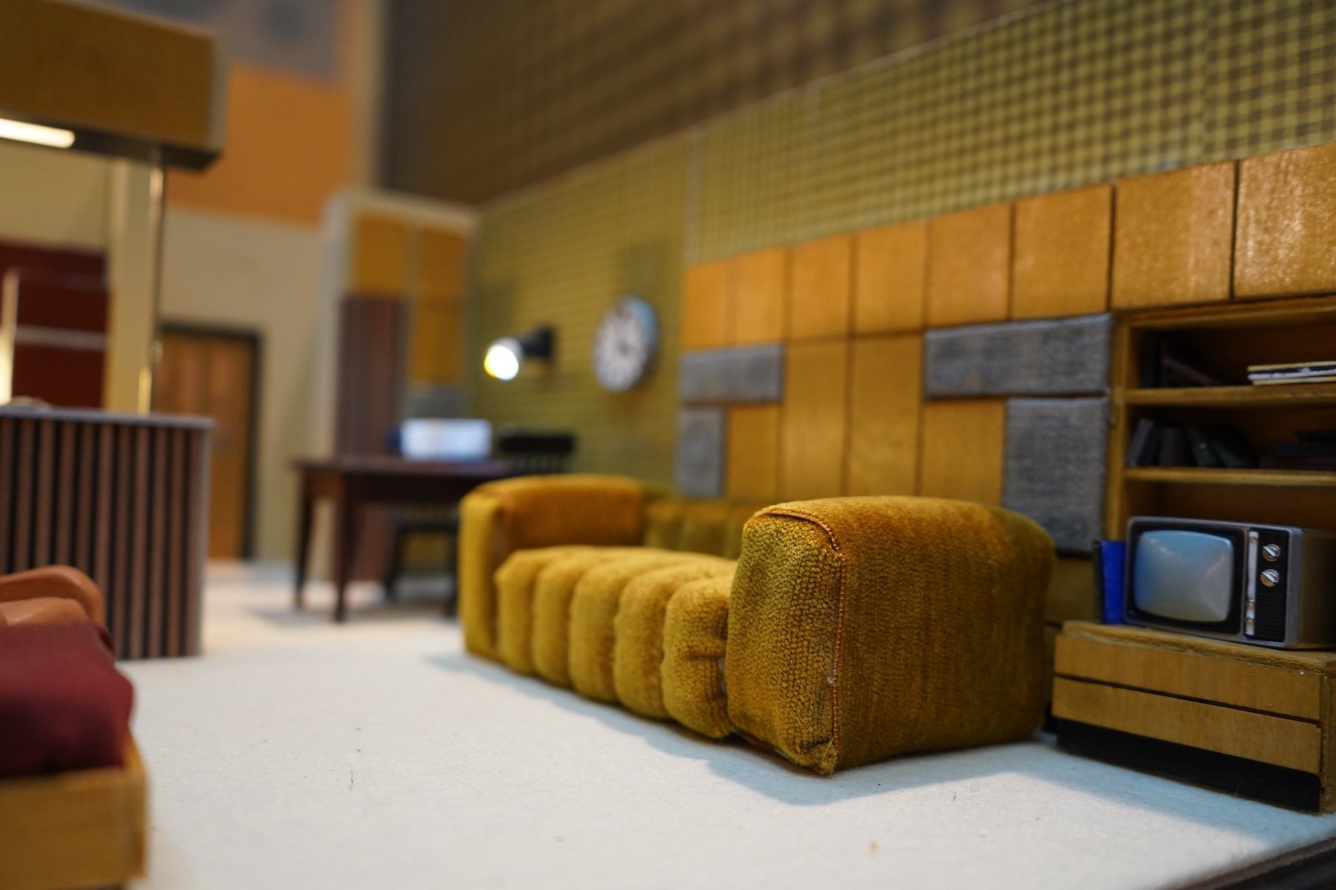 In einem schwarzen, leeren Raum wird seine Wohnung wie eine Filmkulisse dargestellt. Ein Modell seiner eigenen Wohnung steht auf einem Tisch, um eine „mise en abîme“ zu schaffen. Die Kamera schwenkt ständig zwischen der Realität und dem Modell hin und her. Die Dimensionen einiger Elemente der Szenerie sind bewusst so gewählt, dass ein merkwürdiges Verhältnis zwischen Realität und Modell entsteht (z.B. eine überdimentionierte Wanduhr und ein Baritonsaxophon).
